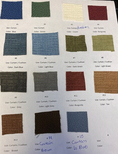 Valances - 1 Pair will cover over 8'.  2 panels at 57" wide x 9-1/2" high each.  The material used is opaque fire retardant polyester. Attachments Images Click Here  Color choices Light Green 1, Dark Green 2, Grey 3, Burgundy 4, Light Blue 5, Dark Blue 6, Brown 7, Creme 8