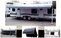 A Shademaker Roll Up Screen Room full length heavy-duty tri-laminated skirting. Wheel well cover. Fiberglass screening, zippered door, adjustable rafter poles for ease of setup. Available in Polar White: No Privacy curtains--All screen. Attaches to the awning frame & snaps to the camper. Meets CPAI84 requirements. This item will leave the factory in up to 5 days. Roll up Add a Rooms also available call for prices. Made in the USA. Awning products can incur shipping damage. They may be returned in the original packaging for credit or refund for damage or defects.